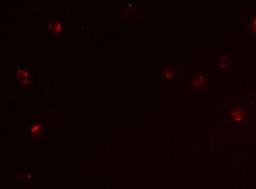 Immunofluorescence of CD160 in Jurkat cells tissue with CD160 antibody at 5 μg/mL. |