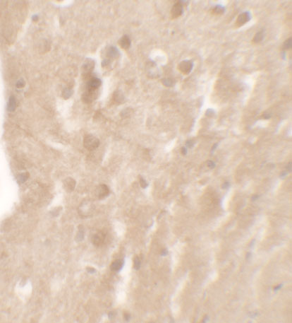 Immunohistochemistry of AIMP1 in mouse brain tissue with AIMP1 antibody at 5 μg/mL. |