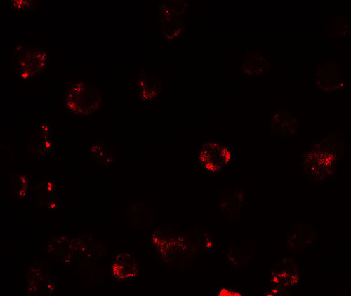 Immunofluorescence of TESPA1 in A431 cells with TESPA1 antibody at 20 μg/mL. |