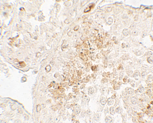 Immunofluorescence of GLIPR1L1 in human testis tissue with GLIPR1L1 antibody at 20 μg/mL. |