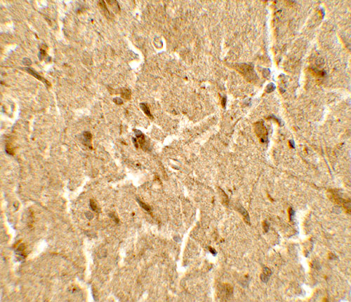 Immunofluorescence of USP25 in human brain tissue with USP25 antibody at 20 μg/mL. |