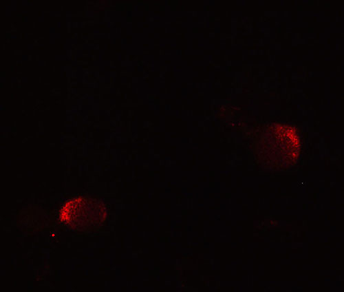 Immunofluorescence of LIN54 in HeLa cells with LIN54 antibody at 20 μg/ml. |