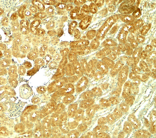 Immunohistochemistry of SMURF1 in rat kidney tissue with SMURF1 antibody at 5 μg/ml. |