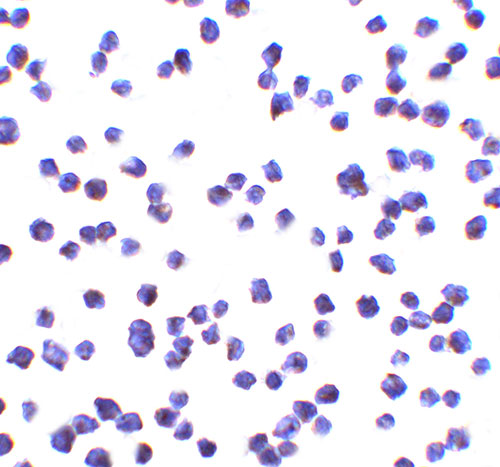 Immunocytochemistry of IQSEC1 in A-20 cells with IQSEC1 antibody at 10 μg/ml. |