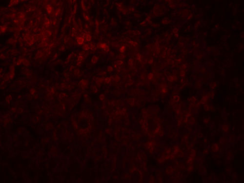Immunofluorescence of MAGEA4 in human breast cancer tissue with MAGEA4 antibody at 20 μg/mL. |