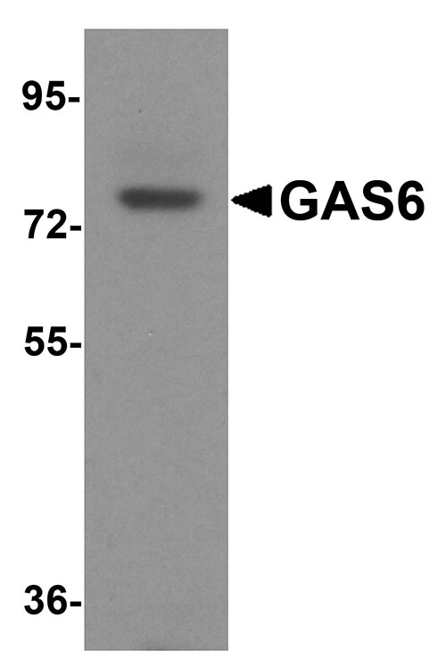 GAS6; GAS6 antibody is human, mouse and rat reactive. At least four isoforms of GAS6 are known to exist; this antibody will only detect the longest isoform.
