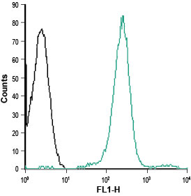 Anti-C3a_Anaphylatoxin_Receptor_(extracellular) - Indirect Flow Cytometry analysis of differentiated HL-60 living cells: Indirect Flow Cytometry analysis of differentiated HL-60 living cells: Black: Unstained cells. Green: Cells + Anti-C3a Anaphylatoxin Receptor (extracellular) antibody (APR00512G), (5-10 μg/1x106 cells). |