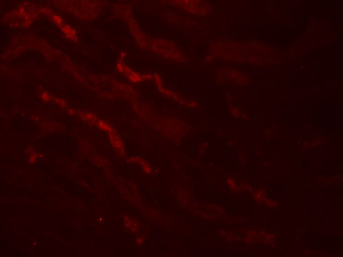 Immunofluorescence of KLK4 in human kidney tissue with KLK4 antibody at 20 μg/mL. |