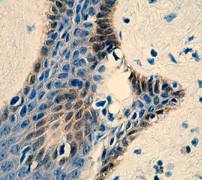 B. Immunohistochemical analysis of human skin using anti-14-3-3 b/a RabMab (Cat. APR13980G).