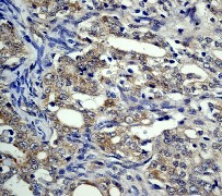 B. Immunohistochemical analysis of paraffin-embedded human prostate carcinoma using anti-4E-BP1 RabMAb (Cat. APG01380G). |
