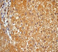 B. Immunohistochemical analysis of paraffin-embedded human liver using anti-Aldh1a1 RabMAb (Cat. APG01730G). |
