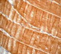 The alpha-actinins are a multigene family of four actin-binding proteins related to dystrophin. The two skeletal muscle isoforms of alpha-actinin (ACTN2 and ACTN3) are major structural components of the Z-line involved in anchoring the actin-containing thin filaments. In humans, ACTN2 is expressed in all muscle fibres, while ACTN3 expression is restricted to a subset of type 2 fibers. Absence of alpha-actinin-3 is not associated with an obvious disease phenotype, raising the possibility that ACTN3 is functionally redundant in humans, and that alpha-actinin-2 is able to compensate for alpha-actinin-3 deficiency (1). Alpha-Actinin-3 is specifically expressed in fast-twitch myofibers responsible for generating force at high velocity. The absence of a disease phenotype secondary to alpha-actinin-3 deficiency is likely due to compensation by the homologous protein, alpha-actinin-2. However, the high degree of evolutionary conservation of ACTN3 suggests function(s) independent of ACTN2. Highly significant associations between ACTN3 genotype and athletic performance have been demonstrated in both male and female athletes.