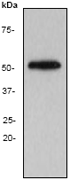 A. Western blot analysis on HeLa cell lysate using anti- alpha-Tubulin RabMAb (Cat. APR11255G), dilution 1:50,000. |