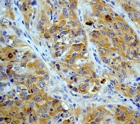B. Immunohistochemical analysis of paraffin-embedded human lung carcinoma using anti-AMPK beta-1 RabMAb (Cat. APG01837G). |