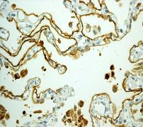 Aquaporin 5 is a water channel protein. Aquaporins are a family of small integral membrane proteins related to the major intrinsic protein (MIP or AQP0). Aquaporin 5 plays a role in the generation of saliva, tears and pulmonary secretions (1). It is expressed in epithelia of lung, cornea, and various secretory glands; sites where extracellular osmolality is known to fluctuate (2). Expression of Aquaporin 5 may have pathophysiological implications attributed to a dysfunctional water regulation by Aquaporin 5such as endolymphatic hydrops (i.e. in Meniere's disease) or sensorineural hearing loss (i.e. in Sj鰃ren's syndrome) (3). Up-regulation of Aquaporin 5 may be involved in differentiation of human gastric cancer cells (4).