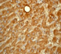 B. Immunohistochemical analysis of paraffin-embedded human liver using anti-Atg7 RabMAb (Cat. APG02063G). |