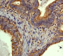 B. Immunohistochemical analysis of paraffin-embedded human gastric carcinoma using anti-Beta-Tubulin RabMAb (Cat. APR11521G)