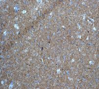 Immunohistochemical analysis of paraffin-embedded human brain tissue using anti-BM88 RabMAb (Cat. AMM05623G).