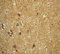 B. Immunohistochemical analysis of paraffin-embedded human brain tissue using anti- CaMKIV RabMAb (Cat. APG03199G)