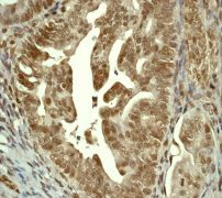 C. Immunohistochemical analysis of paraffin-embedded human ovarian adenocarcinoma using anti-CaMKIV RabMAb(Cat. APG03199G) |