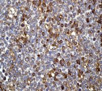 Immunohistochemical analysis of paraffin-embedded human tonsil tissue using anti-Calnexin RabMAb (Cat. APG03203G). |