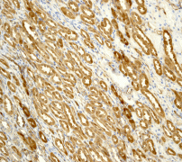 C.Immunohistochemical analysis of paraffin-embedded human kidneys using anti- Calpactin I light chain/ S100A10 RabMAb (Cat. APR11554G). |