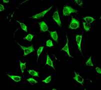 Fig 3. Immunofluorescent staining of HeLa cells using anti-Calreticulin RabMAb (Cat. APR14312G).