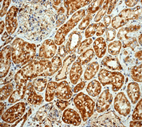 Fig 2. Immunohistochemical analysis of paraffin-embedded human kidney tissue using anti-Calreticulin RabMAb (Cat. APR14312G). |