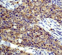 B. Immunohistochemical analysis of paraffin-embedded human colon adenocarcinoma using anti-Pro-Caspase-3 RabMAb(Cat. APG02401G). |