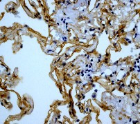 B. Immunohistochemical analysis of paraffin-embedded human lungs using anti-Caveolin-1 RabMAb (Cat. APG02447G).
