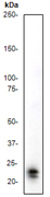 C. Western blot analysis on A431 cell lysate using anti-Caveolin-1 RabMAb (Cat. APG02447G); dilution 1:20,000. |