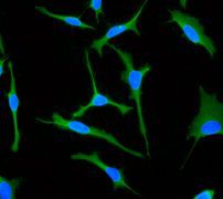 Immunofluorescent staining of HeLa cells using anti-CCT-alpha RabMAb (Cat. AMM05710G). |