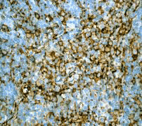B. Immunohistochemical staining of paraffin-embedded human lymph node using anti-CD11c/ITGAX RabMAb (Cat. APR15330G). |