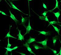 B. Immunofluorescent staining of SH-SY5Y cells using anti-NCAM RabMAb (Cat. AMM05721G).