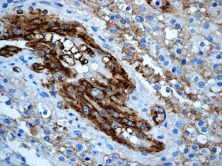 Immunohistochemical analysis of paraffin-embedded human glioma using anti-CD90 RabMAb (Cat. AMM05723G). |