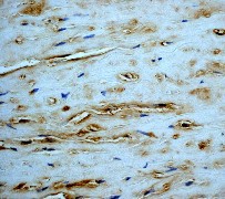 B. Immunohistochemical analysis of paraffin-embedded human normal aorta using anti-CPI- 17 alpha RabMAb (Cat. APR15570G). |