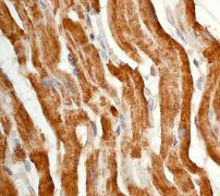 B. Immunohistochemical analysis of paraffin-embedded human heart muscle using anti-Cytochrome C RabMAb (Cat. APR07479G) |
