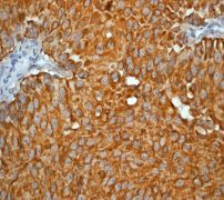 2a. Immunohistochemical staining of paraffin-embedded human kidney carcinoma using anti-CK-19 RabMAb (Cat. APR15667G). |