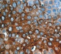 B. Immunohistochemical staining of paraffin-embedded cervical carcinoma using anti-Cytokeratin 4 RabMAb (Cat. APR15668G). |