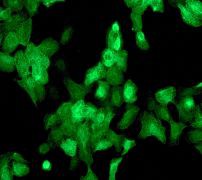 Immunofluorescent staining of A431 cells using anti- Cytokeratin 4 RabMAb (Cat. APR15669G). |