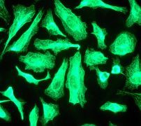 B. Immunofluorescent staining of HeLa cells using anti-CK-7 RabMAb (Cat. APR15675G). |