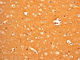B. Immunohistochemical analysis of paraffin-embedded human brain tissue using anti-DJ-1 RabMAb (Cat. APR07586G) |