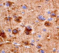 B. Immunohistochemical staining of paraffin-embedded human brain tissue using anti-Dynamin-1 RabMAb (Cat. AMM05852G). |