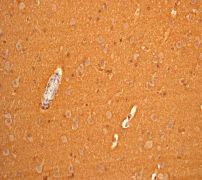 B. Immunohistochemical analysis of paraffin-embedded human brain tissue using anti-GAP43 RabMAb (Cat. APR11998G). |