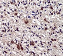 B. Immunohistochemical staining of paraffin-embedded human brain using anti-GluR2/3 RabMAb (Cat. AMM05922G). |