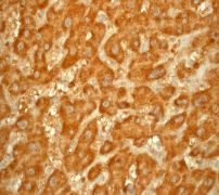 B. Immunohistochemical staining of paraffin-embedded human liver using anti-Gstk1 RabMAb (Cat. AMM05242G). |