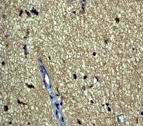 B. Immunohistochemical analysis of paraffin-embedded human brain tissue using RabMAb. (Cat. APR12411G). |
