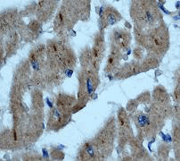 B. Immunohistochemical analysis of paraffin-embedded human heart muscle using anti-ILK RabMAb (Cat. APR16839G) |