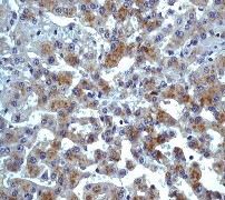 B. Immunohistochemical analysis of paraffin-embedded human liver tissue using anti-CKR3/CCR3 (C-term) RabMAb (Cat. APR15307G). |