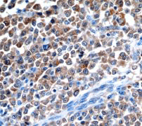 B. Immunohistochemical staining of paraffin-embedded human testis carcinoma using anti-LDH-C RabMAb (Cat. APR08171G). |